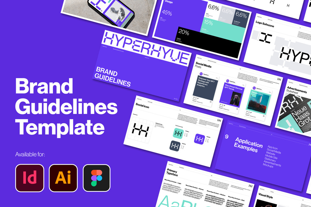 Meta | brand guidelines template is a set of 60 fully customizable layout pages for Adobe InDesign & Illustrator or Figma. The file is well-structured and organized across 9 different sections. This Brand Guidelines template allows you to simply add your logo, images and edit your brand colors and typography and you’re good to go. Don’t waste your time, we’ve done all the hard work for you.