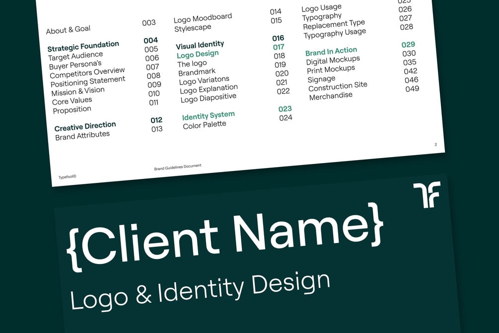A well-structured presentation that guides your client through every aspect of the brand identity, including: